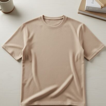 The clean, plain design makes it a versatile staple for any wardrobe, easily paired with jeans, shorts, or layered under a jacket. The skin tone color is a subtle and modern choice that complements a variety of looks. Whether you’re lounging at home or heading out, this t-shirt is built for both style and long-lasting comfort.